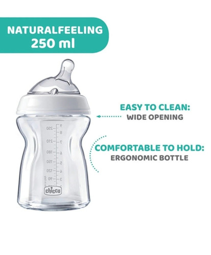 شیشه شیر شیشهای نوزادی چیکو ایتالیا مدل Natural Feeling 250ml