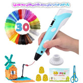 قلم سهبعدی + ۳ عدد فیلامنت رنگی + پایه نگهدارنده + سیم USB + دفترچه راهنما