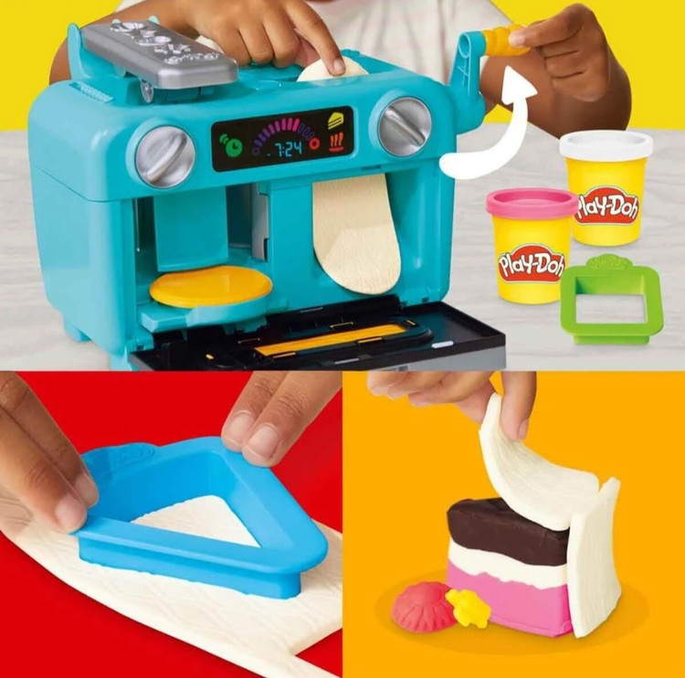 این مجموعه فوقالعاده شامل خمیر بازی رنگی، ابزارهای تزئین کیک و یک فر جادویی است که وقتی دسته آن را میچرخانید، کیکهای رنگی و برش خورده از فر بیرون میآیند! 🎉