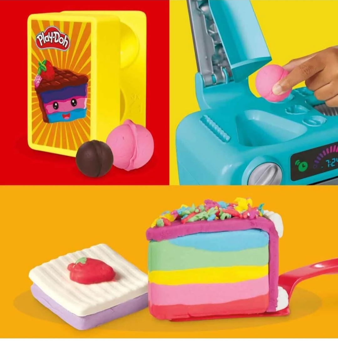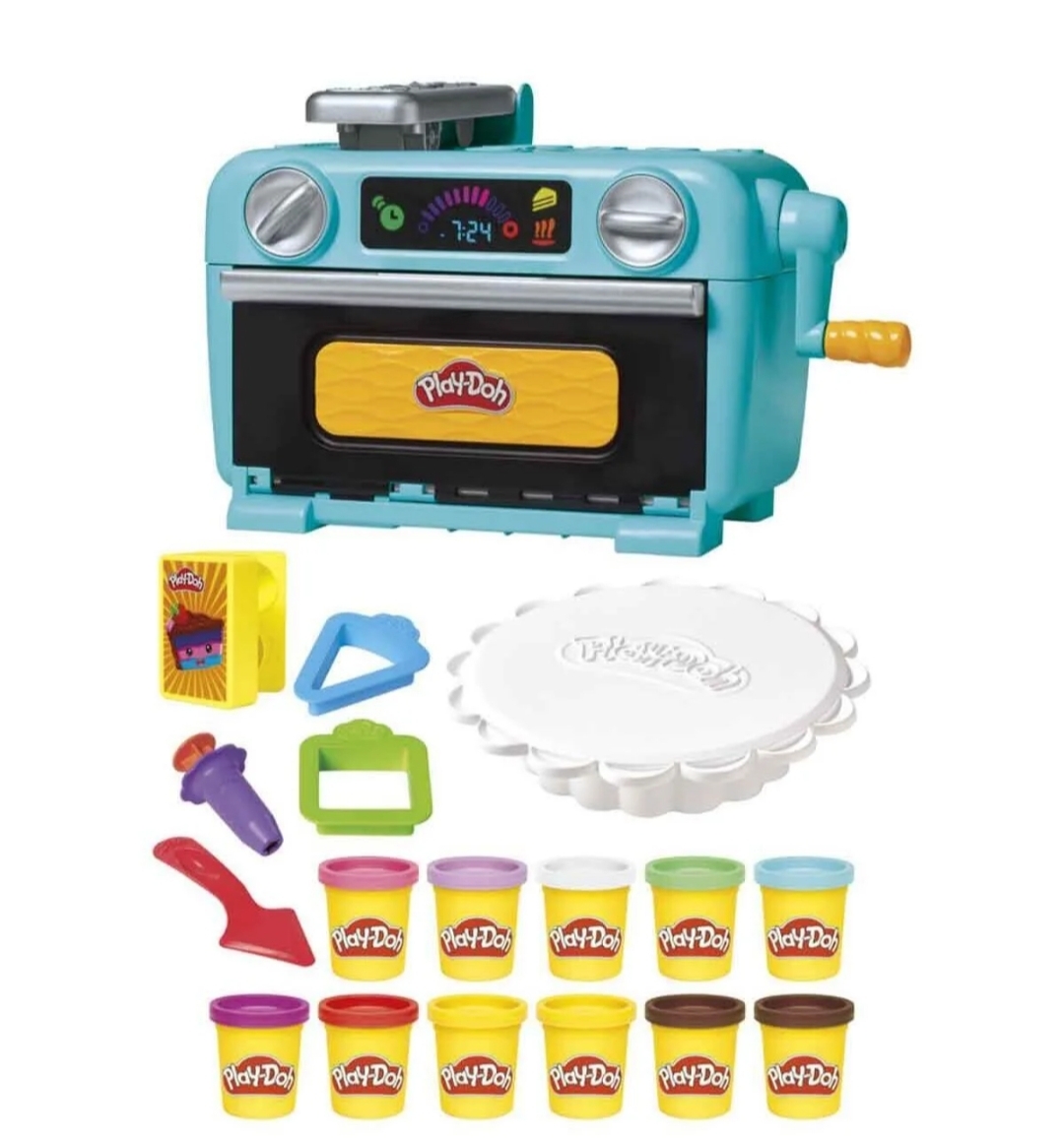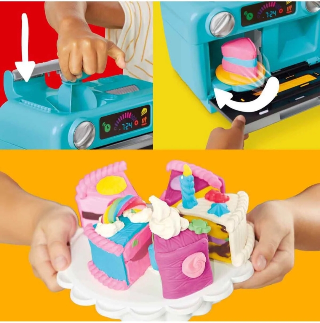 این مجموعه فوقالعاده شامل خمیر بازی رنگی، ابزارهای تزئین کیک و یک فر جادویی است که وقتی دسته آن را میچرخانید، کیکهای رنگی و برش خورده از فر بیرون میآیند! 🎉