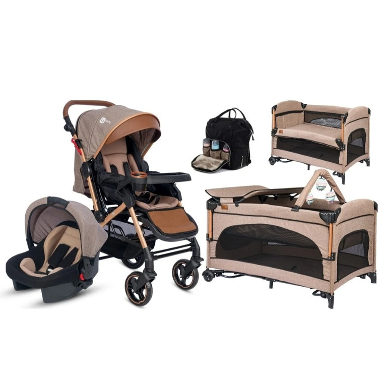 ✨ شامل کالسکه Travel سیستم + کریر (Puset) + پارک بازی Oyunparkı + گهواره/ننو Beşik + کیف مادر Çanta