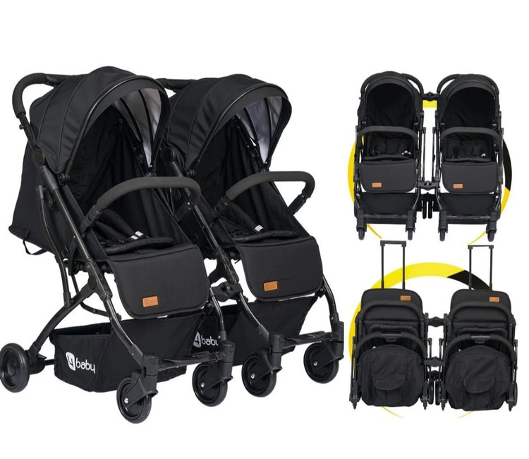 🖤 4Baby Drone Sky Kabin Travel – کالسکه دوقلو مشکی 🖤