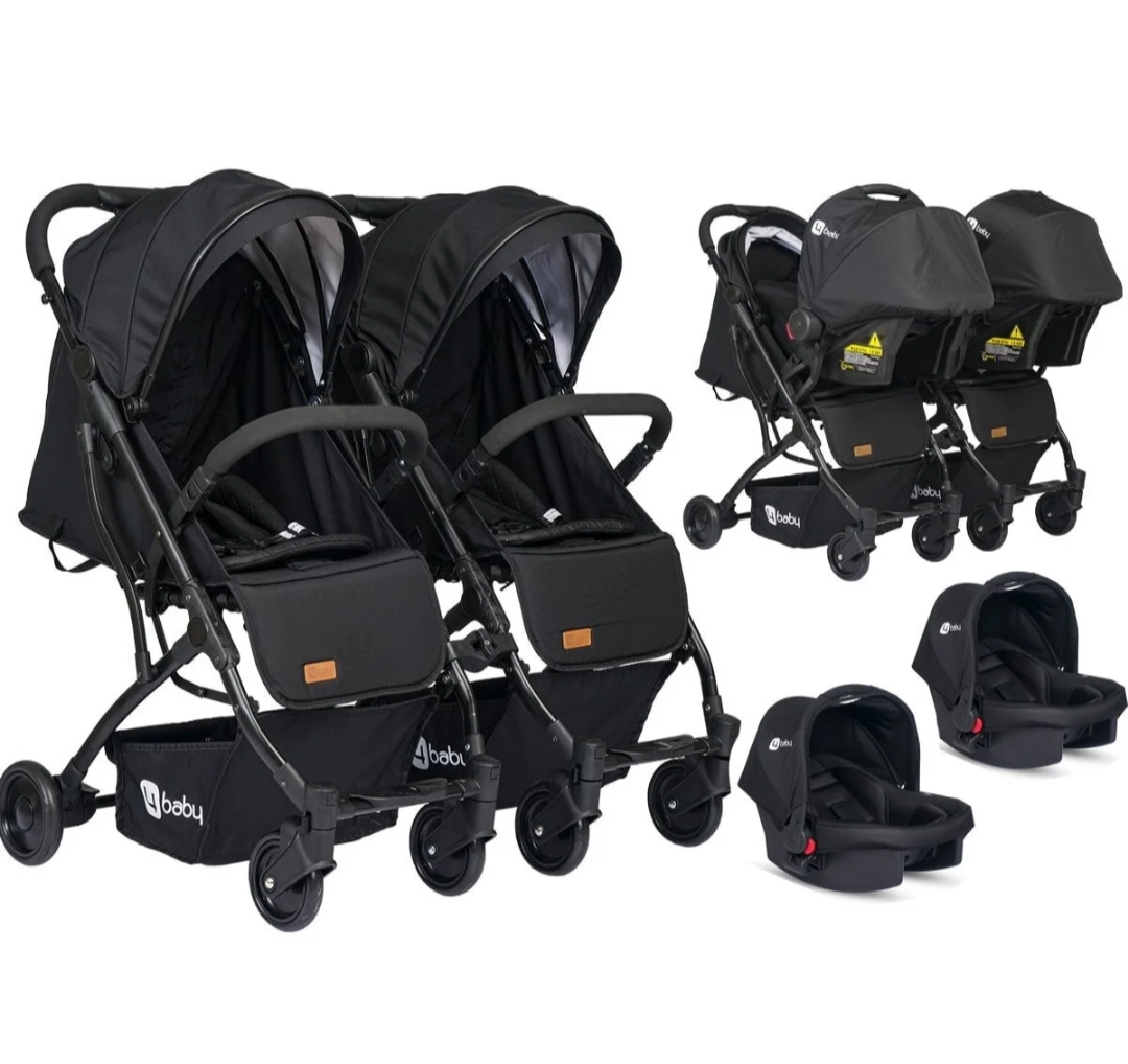 🖤 4Baby Drone Sky Kabin Travel – کالسکه دوقلو مشکی 🖤