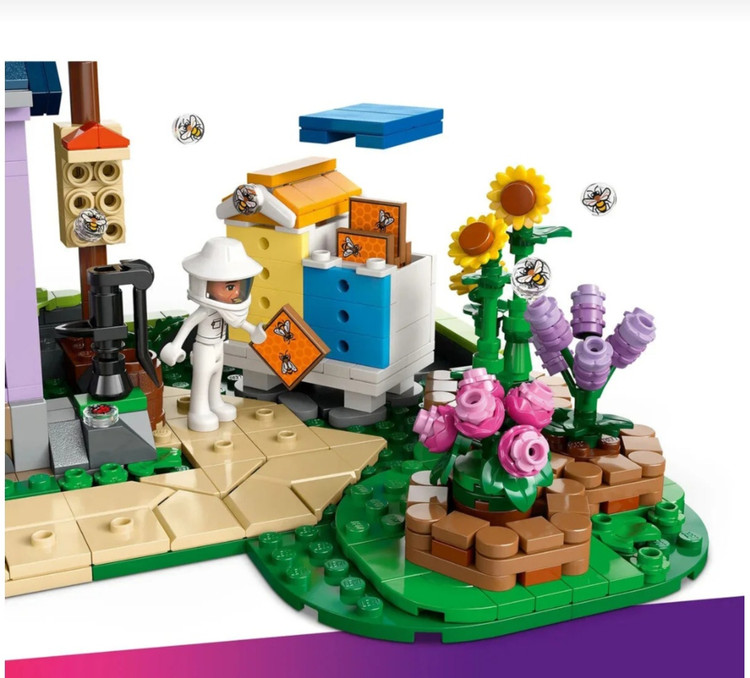 این ست بزرگ از سری LEGO Friends شامل یه خانهی دو طبقهی زیبا 🏠، یه باغ گل رنگارنگ 🌸، و کندوهای زنبورعسل واقعی 🐝 هست!