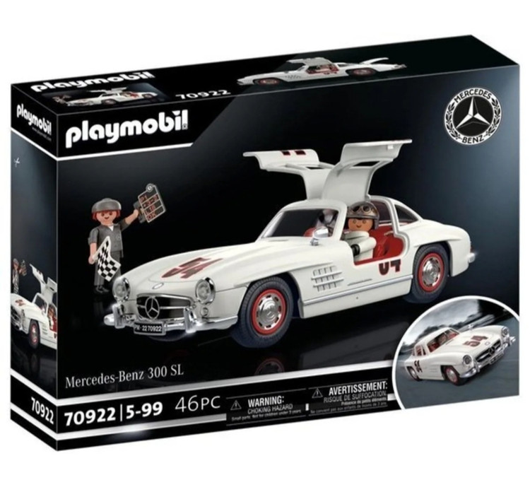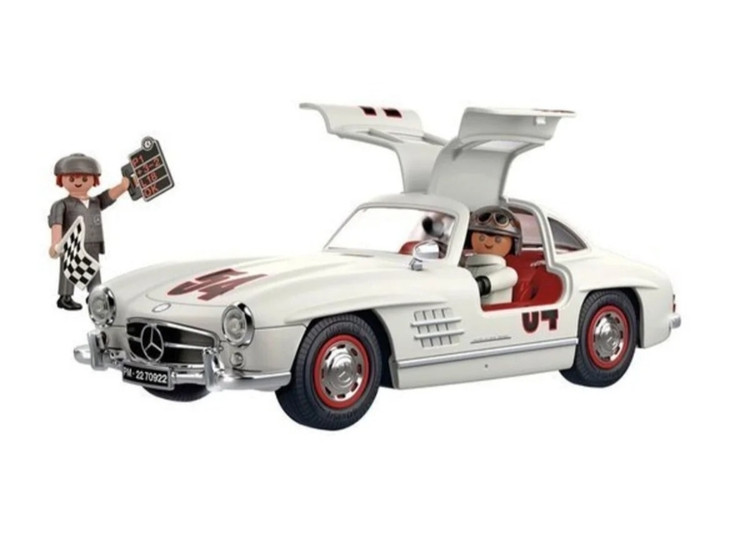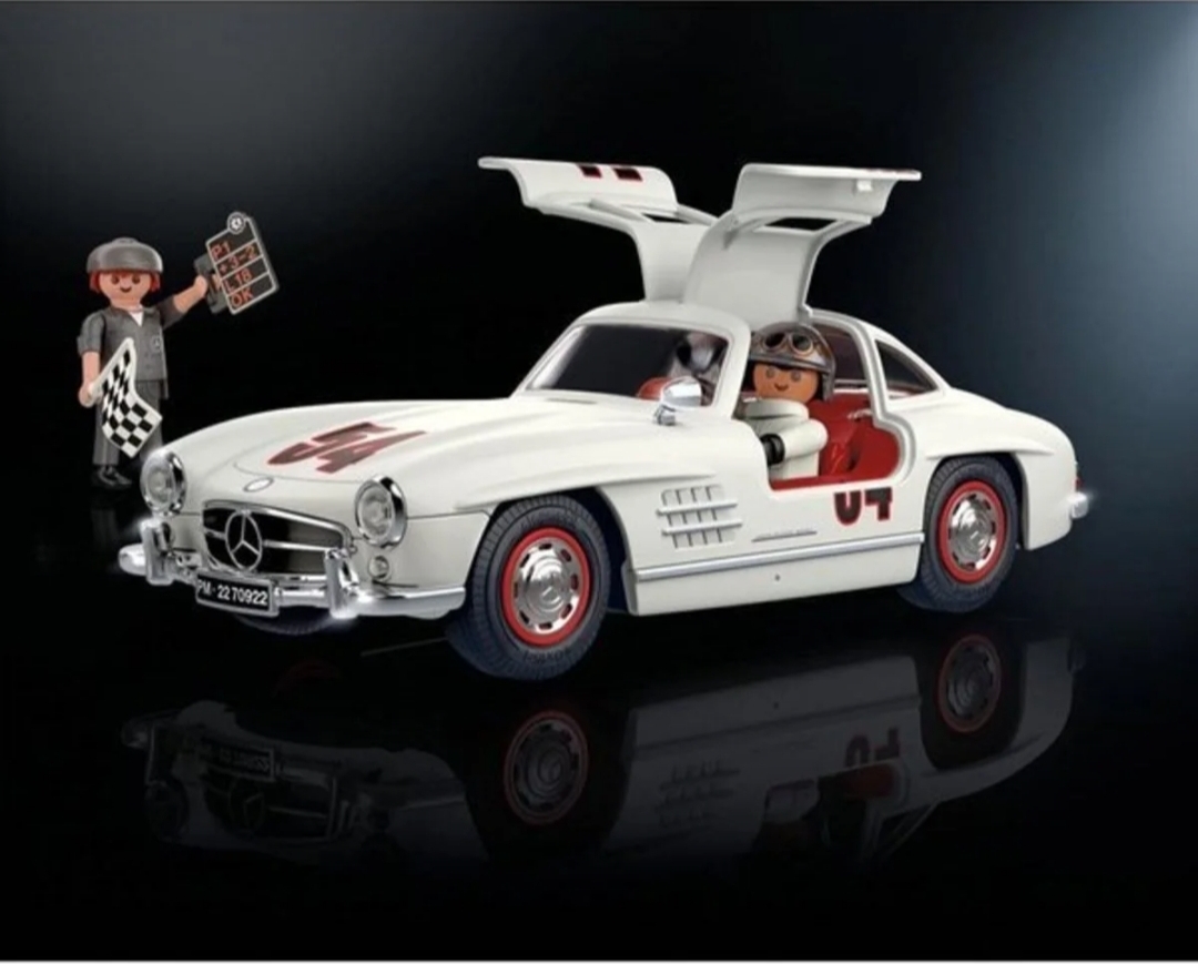این مجموعه شامل مدل ماشین Mercedes‑Benz 300 SL با درهای بالمانند شگفتانگیز، دو فیگور Playmobil و قطعات جانبی جذاب مثل جعبه ابزار و تابلو اطلاعات خودرو است 🔧🧑🔧.