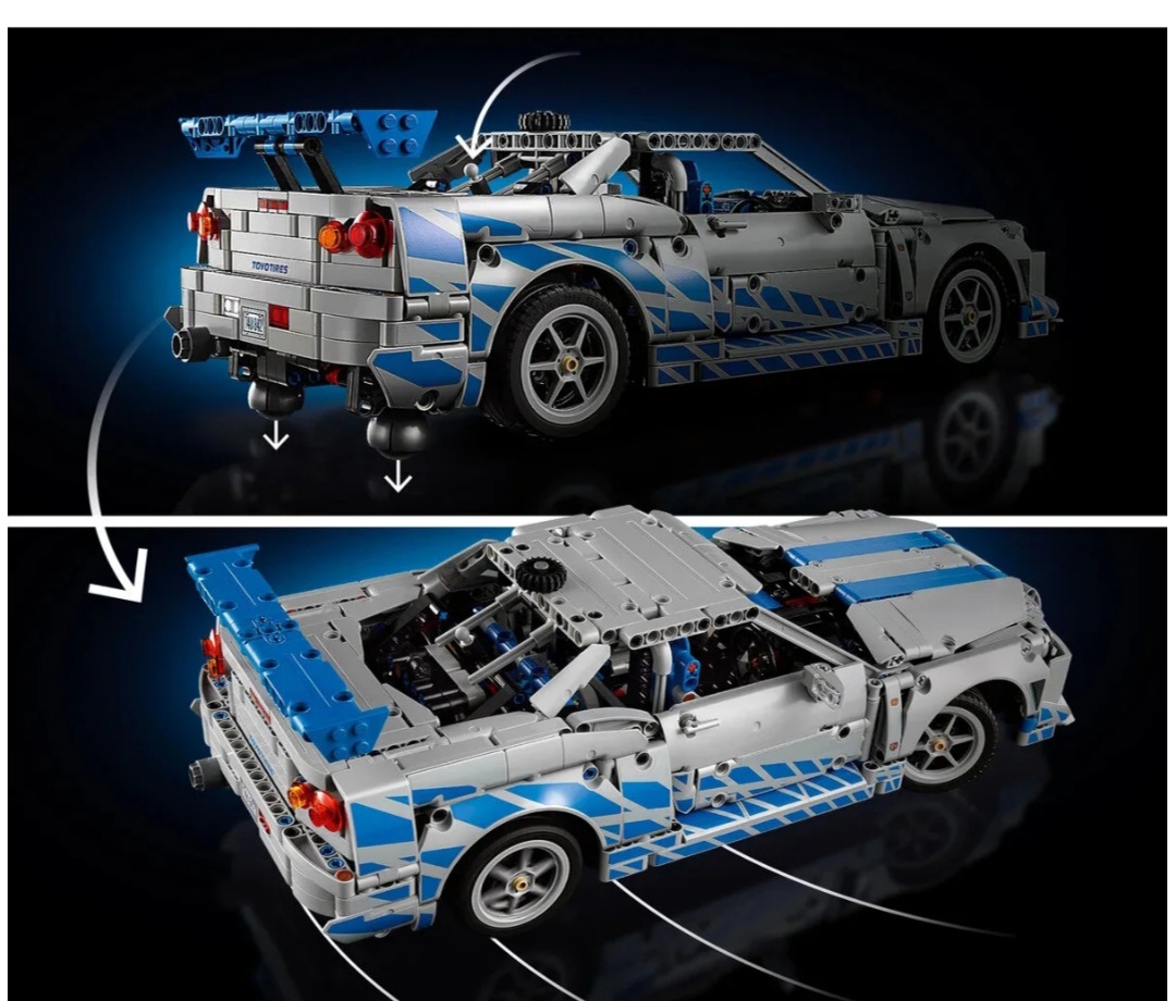 در این مدل لگو، LEGO تمام جزئیات کلیدی ماشین Nissan Skyline GT‑R (R34) از فیلم 2 Fast 2 Furious را بازسازی کرده است، همراه با ویژگیهای مهندسی پیچیده و جزئیات مکانیکی: