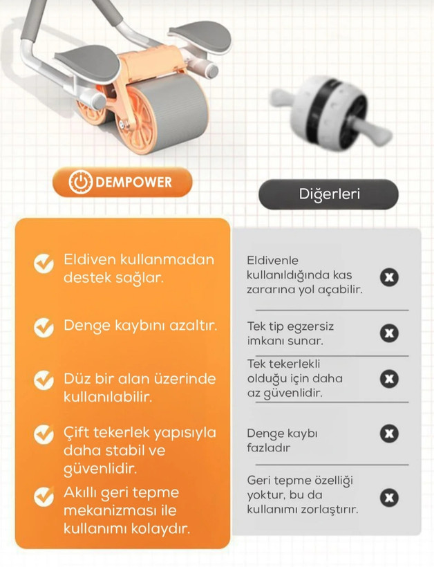 اگر به دنبال یک میکرۀ شکمی حرفهای، ایمن و راحت هستید، مدل Dempower dirsek destekli یکی از بهترین گزینههاست. طراحی هوشمندانه این دستگاه باعث میشود تمرکز تمرین فقط روی عضلات شکم باشد و حرکات با فرم صحیح انجام شود.