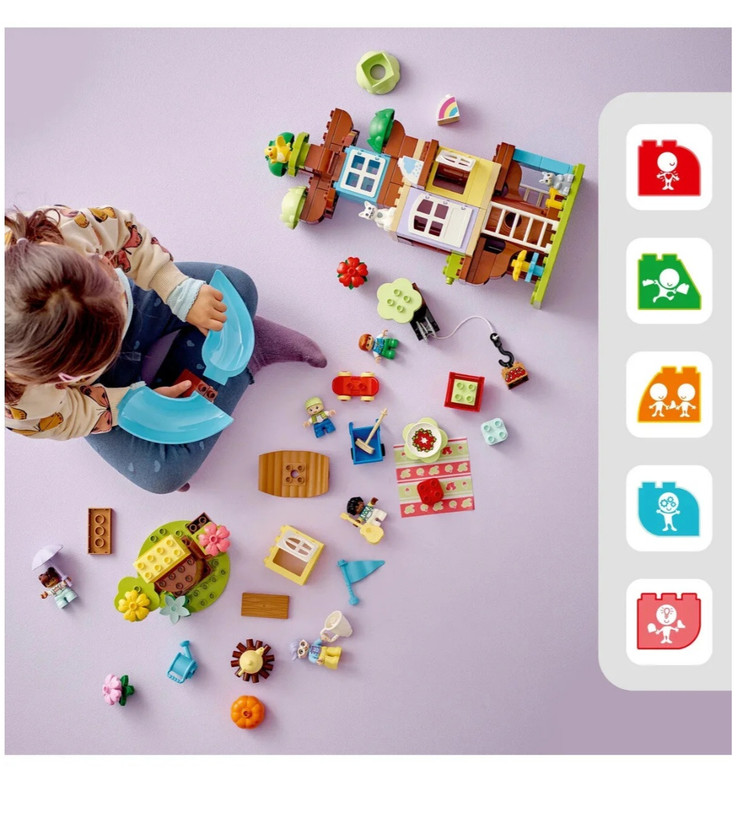 - ۳ حالت ساخت متفاوت: 🔄 این لگو به کودکان امکان میدهد خانه درختی، باغبان یا سرسرهای جذاب بسازند و دنیای بازیشان را متنوع کنند.